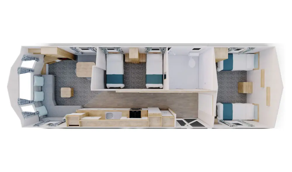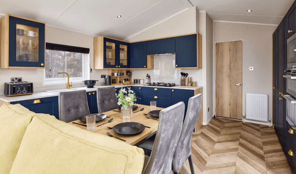 The Willerby Gainsborough is designed to offer a premium holiday home experience, blending comfort, style, and smart functionality. Its standout feature is the spectacular contemporary kitchen, complete with clever storage solutions and a bold, modern aesthetic.