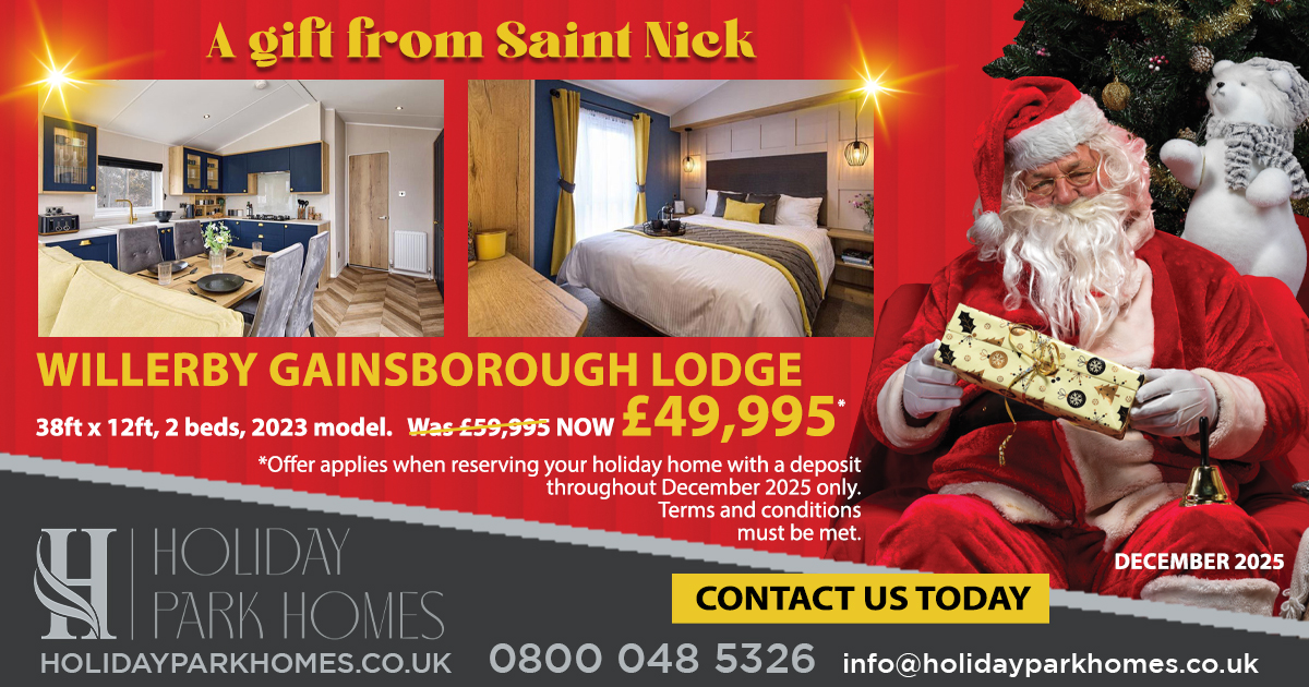 Holiday home buyers are in for a festive treat this December with a limited-time offer on one of our most premium models. The Willerby Gainsborough – 2 Bedroom – 38′ x 12′ – 6 berth – NEW is now available at an incredible reduced price.
